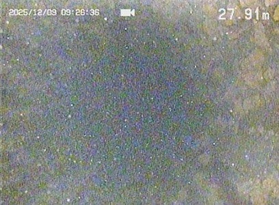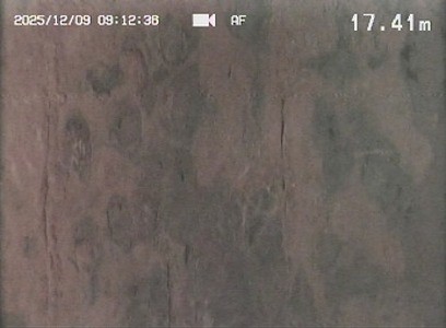 目詰まりにより完全に閉塞しているところがありますが、異常な流入水の流れは確認されず、管内に大きな破損はないと判定し、井戸内洗浄は可能であると判断しました。