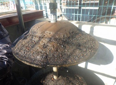 揚水管に硬い付着物はなく、フランジにケーシング管から剥離した錆塊が堆積していました。